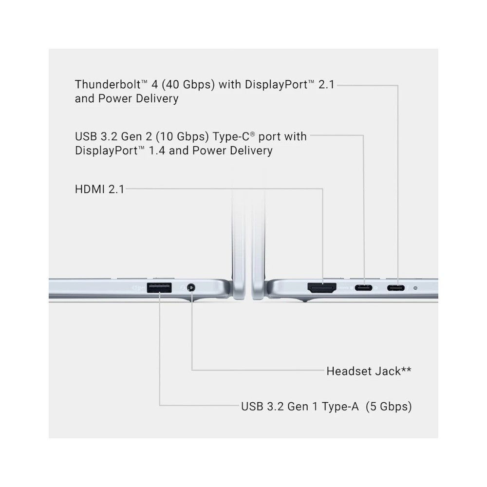 | Ports | 1 × USB 3.2 Gen 1 (5 Gbps) 1 × USB 3.2 Gen 2 Type-C (10 Gbps) with DisplayPort 1.4 & Power Delivery 1 × Thunderbolt™ 4 with DisplayPort 2.1 & Power Delivery 1 × HDMI 2.1 1 × Universal Audio Jack |