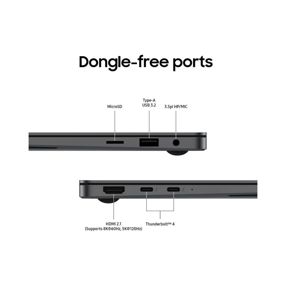 Take productivity to the next level with the Galaxy Book5 Pro-a lightweight powerhouse with AMOLED visuals, touch control, and intelligent AI performance for work or creativity. Just 1.23 kg and 11.6mm thin, this laptop is built to travel without slowing you down. Premium aluminium build feels as good as it looks.